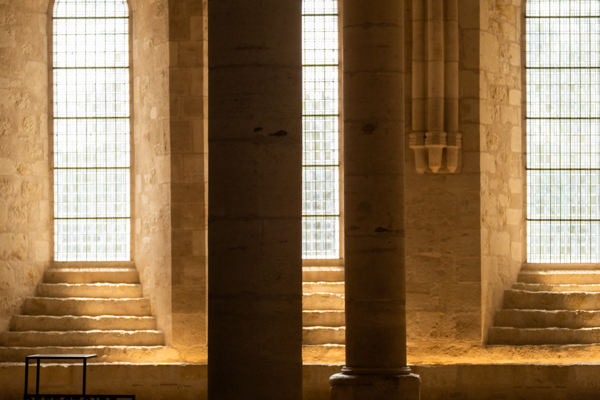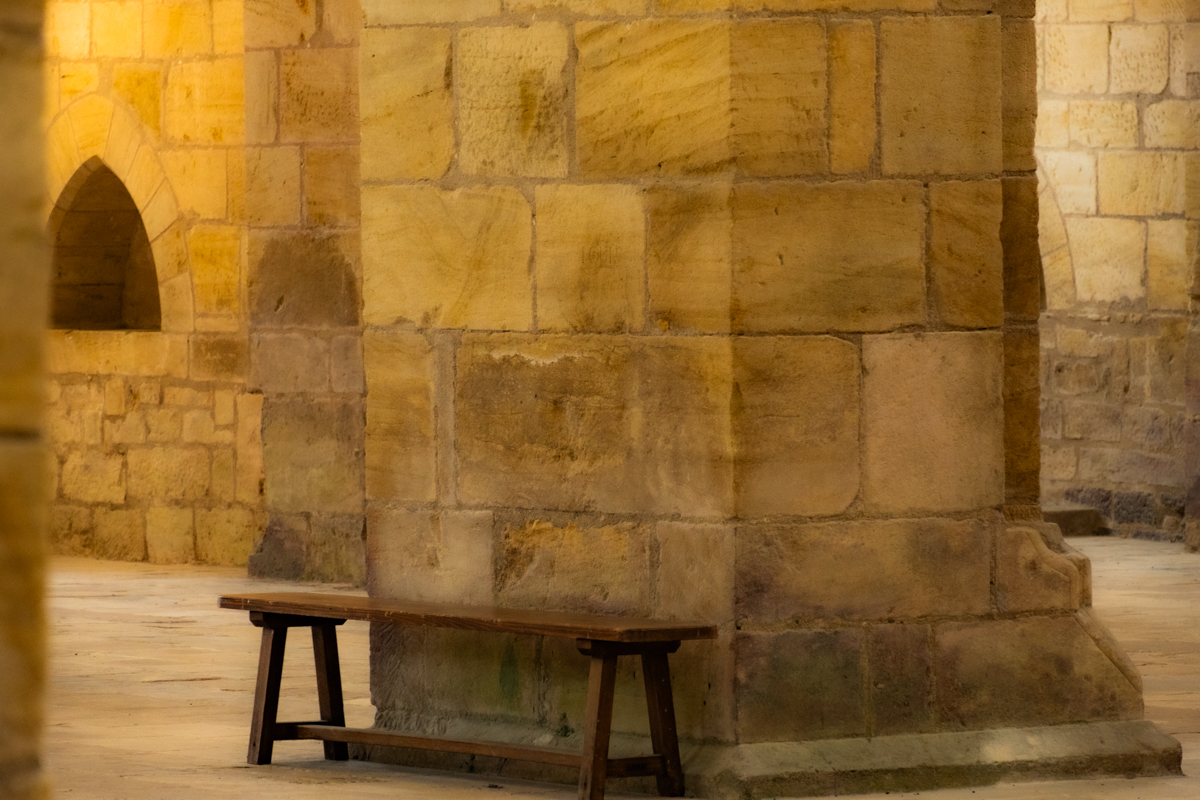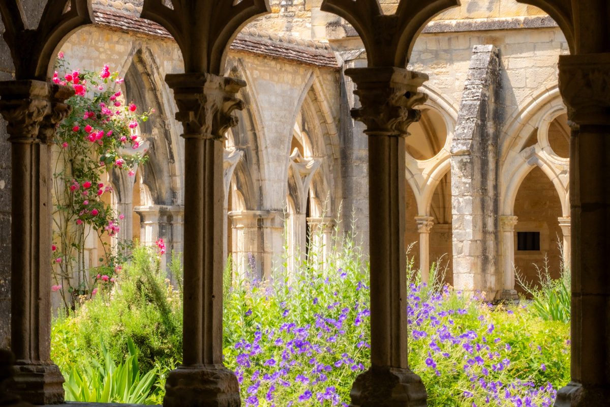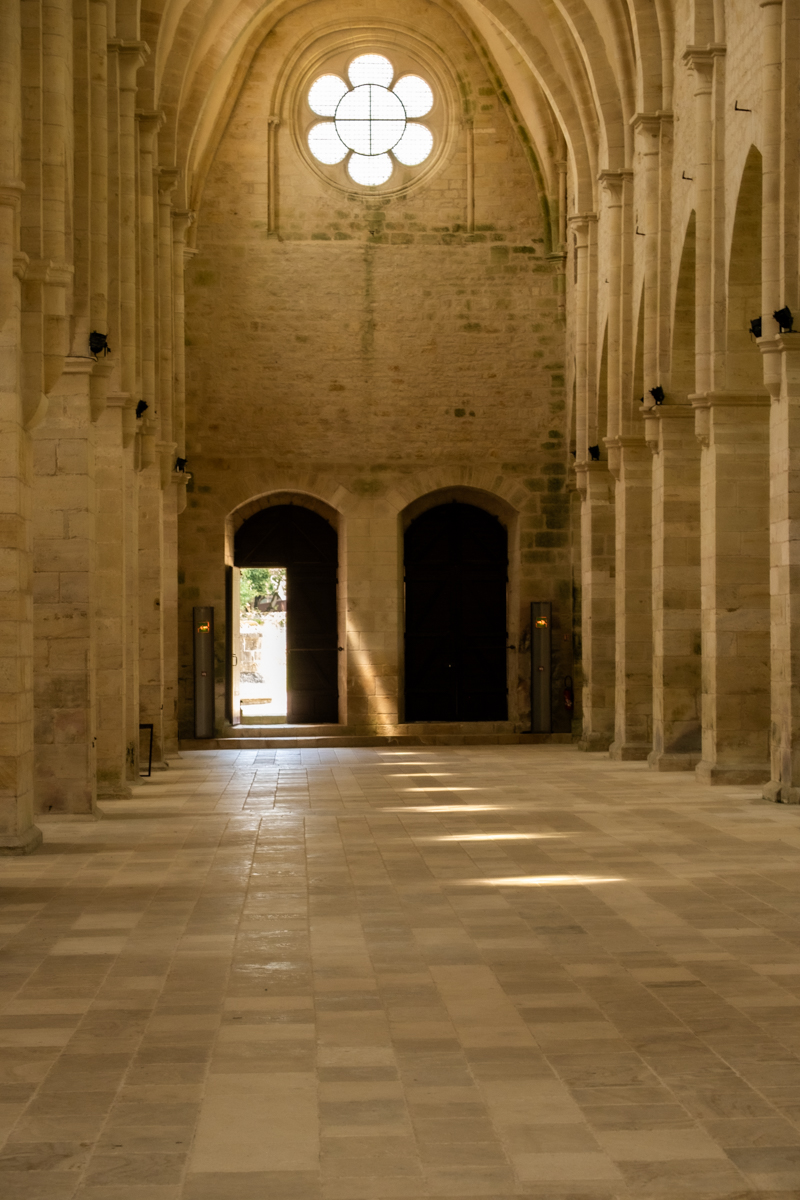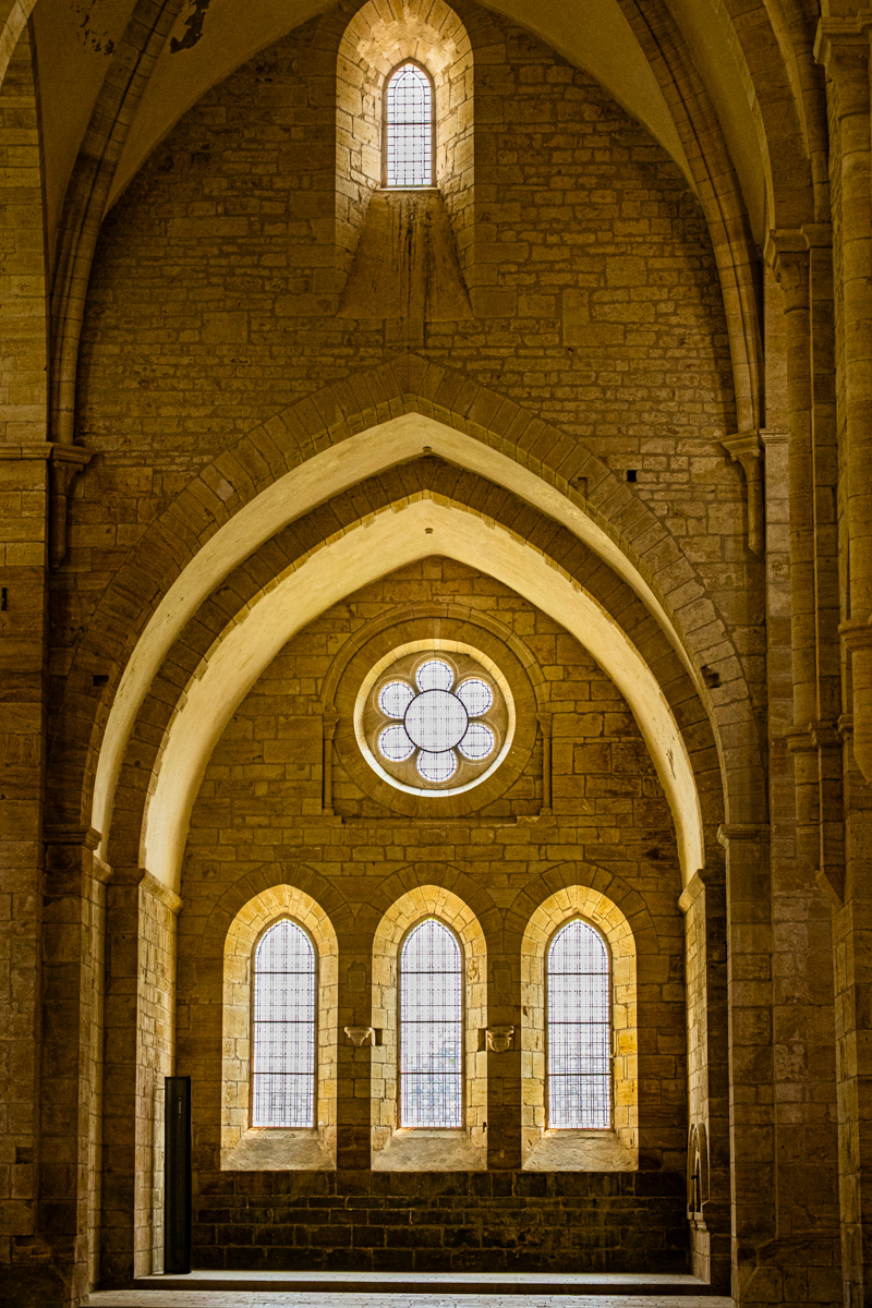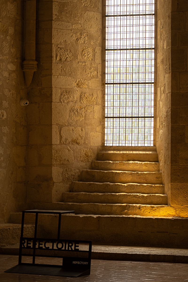 We bezochten ook deze prachtig gerestaureerde Cisterciënzer abdij, sinds 2008 een culturele ontmoetingsplek. Ontdaan van alle aankleding restten grote, lichte en lege ruimtes, met veel hoekjes en trappen. De glas-in-loodramen zijn nu van transparant glas. De zon had vrij spel en hier en daar klonk zachte muziek. Dit serene gebouw is gesitueerd rond een weelderig begroeide binnenhof, omsloten door een prachtige zuilengang.