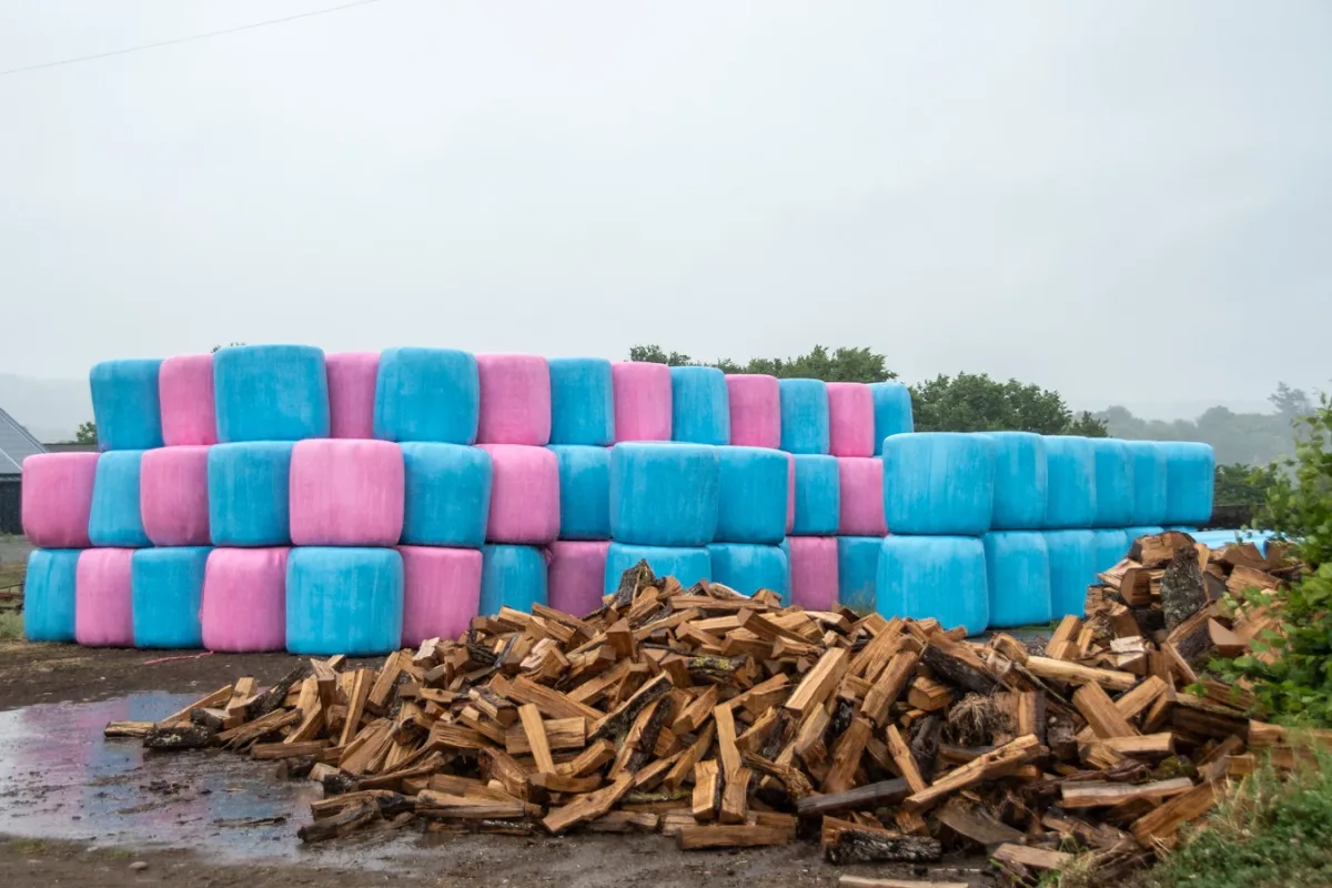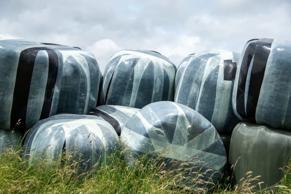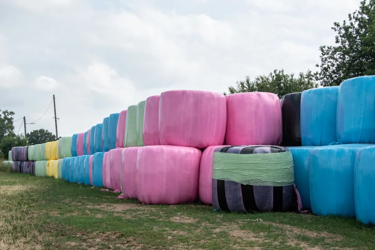 Het verzamelen van de hooi gebeurt op verschillende manieren, met verschillende kleuren.